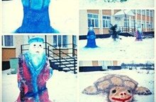 В школе идет полным ходом подготовка к Новому году! Совместными усилиями коллектива и учеников, были сделаны красивые поделки из снега. Территорию школы украсили Дед мороз, снегурочка и красивая, большая черепаха.