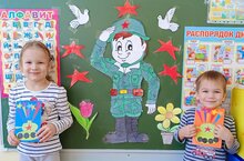 Воспитанники дошкольной группы поздравляют всех дедушек, пап, братьев с праздником - 23 февраля.