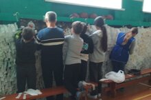 Сотрудники школы и юнармейцы принимают участие в важном деле. Вместе они плетут маскировочные сети для участников СВО. На переменах и в свободное после уроков время нарезанные заранее полоски ткани вплетаются в сеть. Несколько дней работы - и сеть готова.