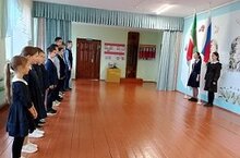 Линейка, посвященная поднятию Государственного Флага и исполнение гимна РФ и РТ.