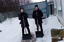 Юнармейцы 8 класса помогли пожилым людям очистить дворы от снега.