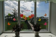 Сегодня учащиеся 1,4 классов приняли участие в акции "Окна Победы" и украсили окна класса.
