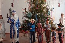 Весело и интересно прошел новогодний праздник в школе.Ребята с радостью встретили самых долгожданных гостей на празднике - Деда Мороза и Снегурочку.Дружно и весело праздновали Новый год вместе со сказочными героями.