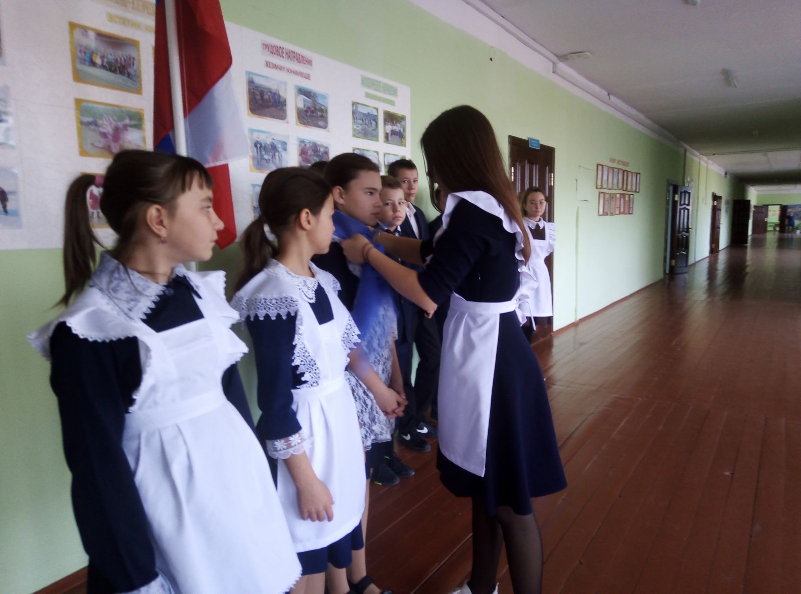 В школе прошла торжественная линейка,посвященная принятию в ряды российского движения школьников. Всего в РДШ вступили 3 ученика.