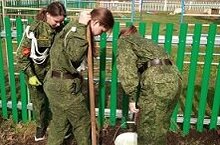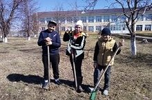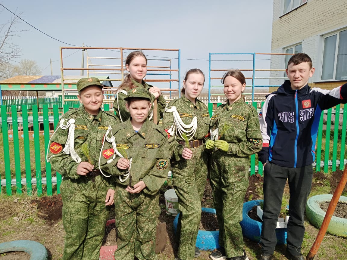 В рамках международной акции "Сад памяти" юнармейцы посадили декоративные сосны на территории школы