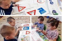 В дошкольной группе воспитанники продолжают изучать условные знаки дорожного движения.