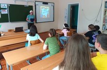 Воспитанники пришкольного лагеря "Кояшкай" посетили сельскую библиотеку. Сафина Р. М. познакомила ребят с историей библиотеки и еë происхождением.