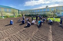 Началась волна весенне-полевых работ на пришкольном участке. Сегодня, 4 мая, всей школой вышли на весенние работы на пришкольный участок. Посадили картофель, лук, морковь, столовую свеклу.
