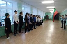 Занятия в школе сегодня, в понедельник, начались с поднятия двух государственных флагов - России и Татарстана и под исполнение двух гимнов.