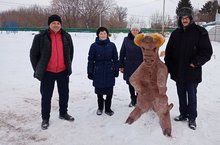 Мәктәп территориясе кар фигуралары белән бизәлде.
