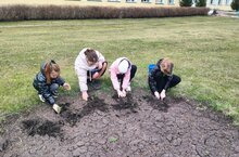 В честь 80-летия Победы в Великой Отечественной войне учащиеся начальных классов приняли участие в экомарафоне "Цветущий победный май! " Они принесли из дома саженцы цветов хризантемы, ромашки и высадили их на территории школы.