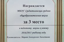 По итогам подготовки школ к новому 2016 - 2017 учебному году, наша школа награждена дипломом 3 степени. Поздравляем!!!