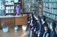 Китапханәдә экскурсиядә. "Китап - минем дустым" дигән кичәсен китапханәче Галиева Р.З. уздырды. Җиңүчеләре: Микушин М., Розыева С., Муртазин И.