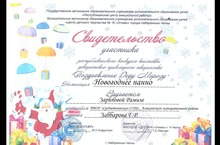 Участвуя в республиканском конкурсе – выставке декоративно-прикладного творчества «Поздравление Деду Морозу», в номинации «Новогоднее панно», ученица 2 класса нашей школы, Зарипова Р.Р. (руководитель Заббарова Г.Р.) и ученица 4 класса Розыева С.Р. (руководитель Гимадеева Г.Х.), получили сертификаты.