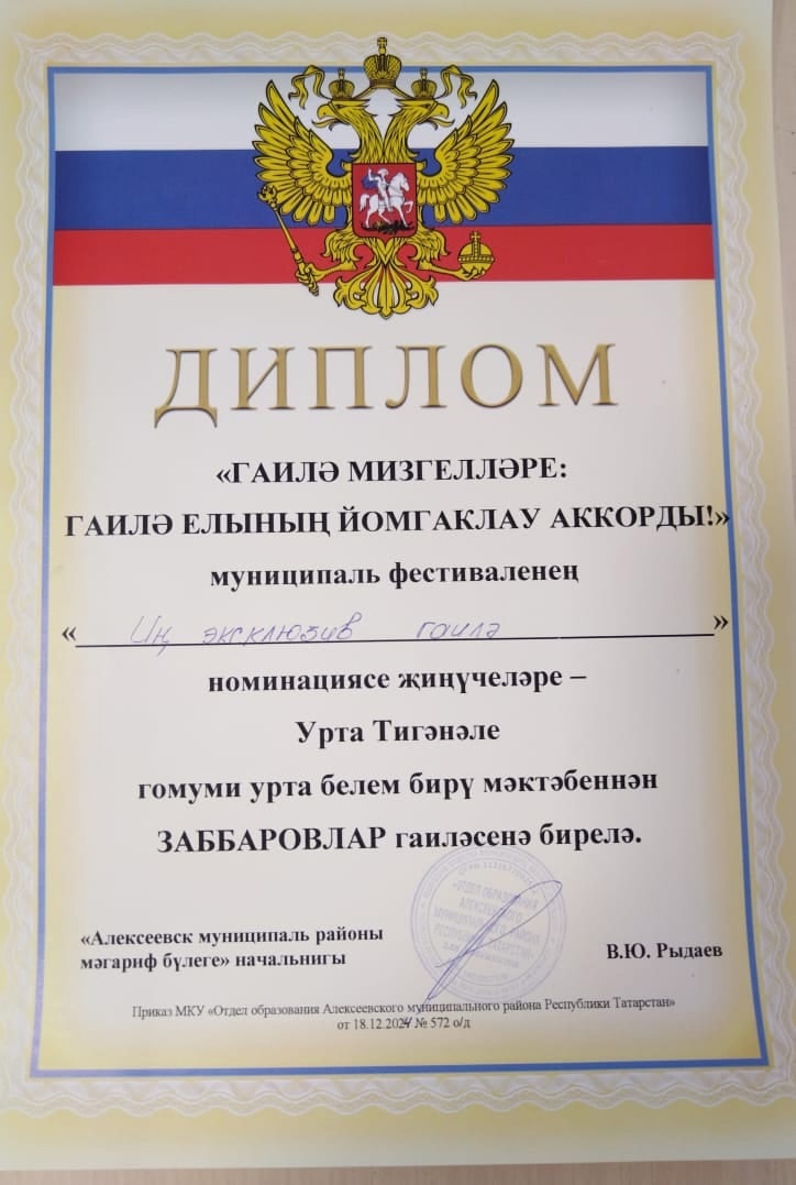 Урта Тигәнәле урта мәктәбеннән Заббаровлар гаиләсе «Иң эксклюзив гаилә» номинациясендә җиңүче булдылар. Молодцы!!! -