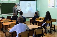 Сегодня для учащихся 6-7-го класса прошло профориентационное занятие «Россия здоровая: медицина и фармация». Перед проведением занятия учащиеся ознакомились с памяткой. Занятие прошло в обычном классе — демонстрация заданий и видеороликов педагогом на экране.
