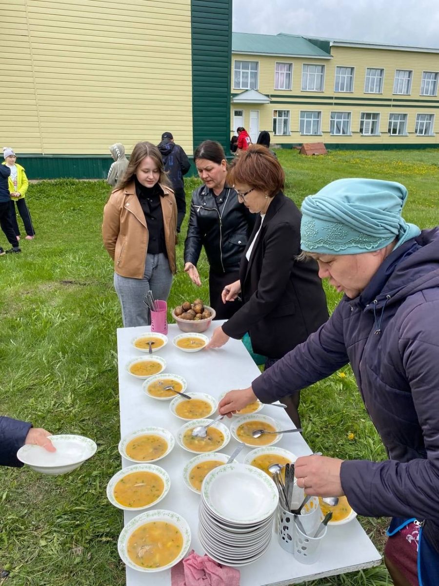 Следующая часть мероприятия прошла на свежем воздухе. Руководитель отряда ЮИД Заббарова Гульнара Равгатовна провела спортивные игры, посвященные пионерской тематике. После игр дети вместе с учителями и поварами приготовили уху и картошку на природе. После трапезы дети еще долго делились друг с другом своими впечатлениями.