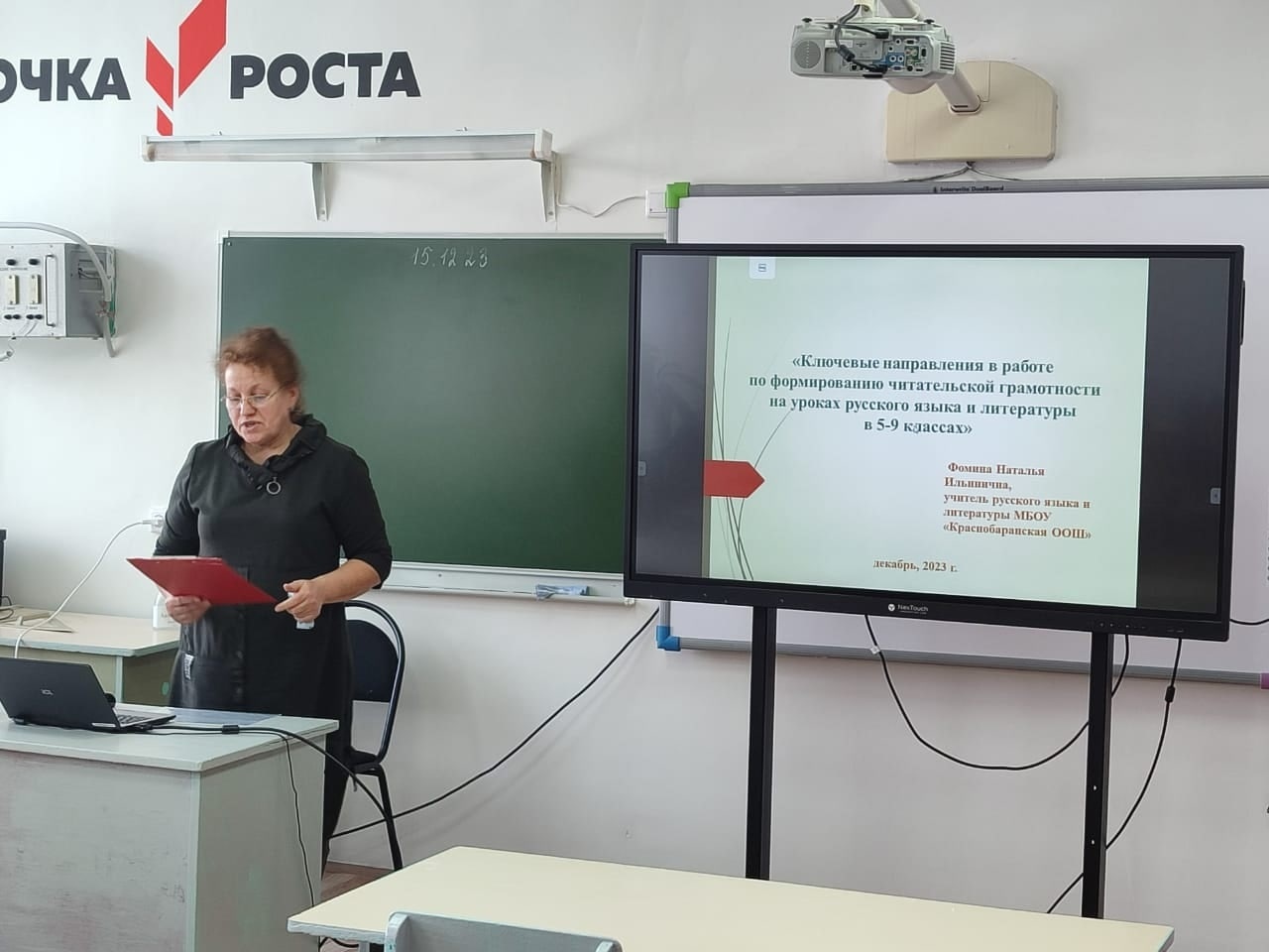 -методическая презентация «Ключевые направления в работе по формированию читательской грамотности на уроках русского языка и литературы в 5-9 классах», Фомина Наталья Ильинична, учитель русского языка и литературы первой квалификационной категории МБОУ «Краснобаранской ООШ»;