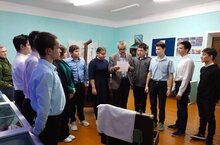 Дәрес укучыларга бирелгән “Нинди геройларны беләсез?” яки “Герой төшенчәсен ничек аңлыйсыз?” кебек сораулардан башланып китте. Иң беренче булып, укучылар сугыш геройларын атадылар. Сөйләшү Бөек Ватан сугышына багышланган күргәзмәдән башланып китте. Укучылар шушы чорга багышланган фотолар, язмалар, җиһазлар белән якыннан таныштылар. 1945 нче елның 10 нчы маенда язылган Галиев Нигъмәтулла хаты тулысы белән укып чыгылды. Аннары Әфганстан, Чечен сугышында катнашкан авылдашларыбыз телгә алынды. Кайберләре белән якыннан таныштылар.