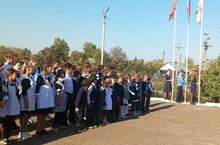 Сегодня еженедельная линейка состоялась с поднятия флагов и пения гимнов РФ и РТ.