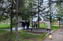 Отряд юнармейцев в предверии празднования Дня Победы, привели в порядок памятник участникам ВОВ. -