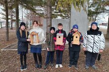 Стартует первая неделя -"Помоги пернатым ,,5.04.2024 учащиеся 4Акласса повесили изготовленные скворечники и покормили птиц.