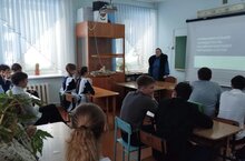 Согласно плану мероприятий месячника по обороно-массовой и военно-патриотической работе в Сахаровской школе во время внеурочной деятельности по профориентации была организована встреча с участковым полиции Егоровым Евгение Александровичем по теме "Есть такая профессия Родину защищать ". Беседа прошла оживленно , дети задавали вопросы .