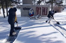 В рамках патриотического месячника, активисты движения Первых и юнармейцы очистили территорию сельского памятника.