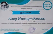 Учитель родного языка и литературы Алексеевский СОШ #1 Назмутдинова Алсу Мидхатовна в номинации " Авторская поэзия" заняла I место и в номинации " Вокал-соло" - ll место.