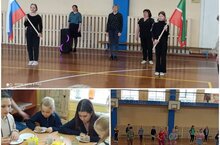 Утро началось традиционно с выноса флагов, исполнения гимна и зажигательной зарядки.