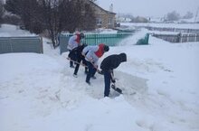Ребята дружно принялись расчищать территорию. Их энтузиазм и трудолюбие быстро привели к успеху: территория была очищена, дорожки освобождены от снега, обеспечивая безопасность передвижения хозяйке дома и её гостям.