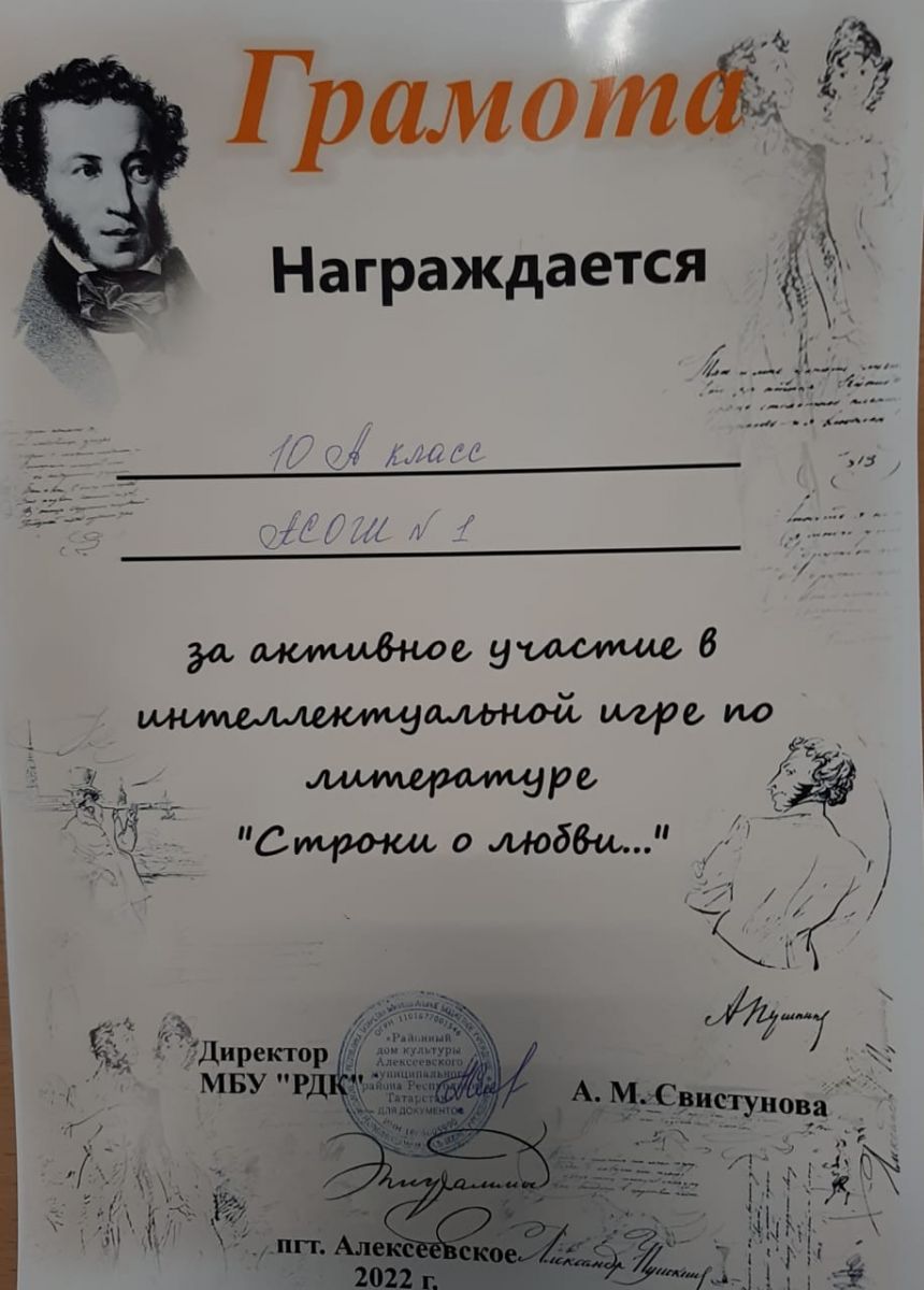 Сегодня обучающиеся 10 класса нашей школы приняли участие в Интеллектуальной игре "Строки о любви ".