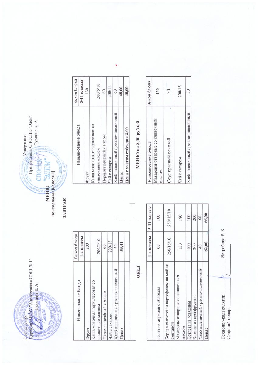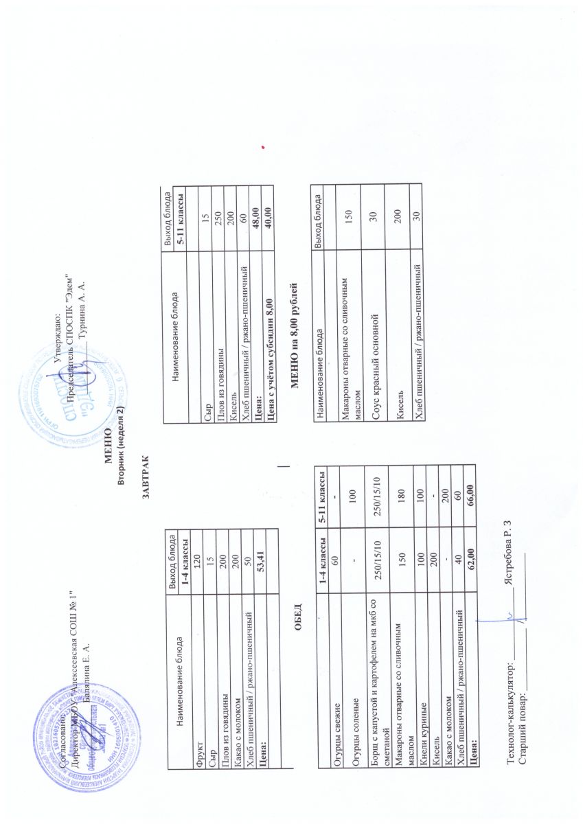 Примерное двухнедельное меню для учащихся 5-11 классов на первое полугодие 2021-2022 учебный год