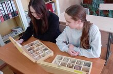 В рамках сетевого взаимодействия две школы - центры "Точки роста" - школа №2 и Мокрокурналинская школа активно сотрудничают с целью подготовки школьников к предметной олимпиаде по геологии. Перед началом заключительного тура Республиканской олимпиады участники готовятся к практическому туру - определению минералов и горных пород.