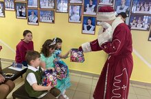 Сказочное представление подготовили работники школы для детишек, провели с ними новогодние конкурсы, поводили хороводы. А Дед Мороз и Снегурочка вручили сладкие подарки.