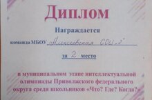 Команда учащихся 10 го класса стали участниками муниципального этапа интеллектуальной олимпиады Приволжского федерального округа среди школьников " Что? Где?Когда?" И заняли 2 место! Поздравляем призеров!