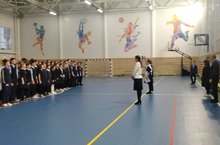 Линейка с торжественным поднятием флага России и Татарстана прошла для учащихся 7-8 классов, где награждали победителей и призеров районных конкурсов, республиканских олимпиад. Также был вручен бронзовый знак ГТО.