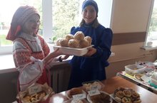 милли ризыклар алып килделәр. Мәктәп яңа пешкән камыр ризыклары, милли сыйлар