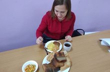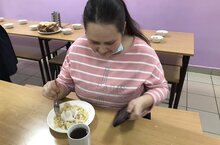 Долбилкина О.Ю. посетила столовую 27.10.2021.Она отметила, что дети заходили в столовую организованной группой, заранее успев помыть руки. Для класса выделено два стола, детей из других классов рядом не было. Столы уже были сервированы завтраком: картофельное пюре, котлета, тушёная капуста, салат из запеченых овощей, компот. На выбор был пшеничный и ржаной хлеб. Посуда без сколов, посторонних предметов не обнаружено. Предложенная еда была вкусной и аппетитной.