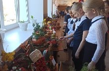 Традиционная выставка работ из овощей и природного материала "Осенины". Активное участие приняли все классы. Ученики вместе с родителями и учителями изготовили интересные выставочные экспонаты и композиции из овощей и природных материалов.