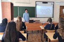 В актовом зале школы состоялась встреча 9-х классов с преподавателем ГБПОУ "Лубянского лесотехнического колледжа" и руководителем-лесничим ГКУ "Билярское лесничество"