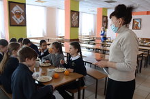 3.02.2021г. Председатель родительского комитета 7б класса Безроднова Т.А. ознакомилась с организацией питания в школьной столовой. Она отметила, что в столовой чистота и порядок, детям нравится, как готовят повара, меню разнообразно и соответствует фактическому набору блюд. Безроднова Т.А. посещением столовой осталась довольна. \ 3.02.20021 елда 7б сыйныфының ата-аналар комитеты рәисе Безроднова Т.А. мәктәп ашханәсендә туклануны оештыру белән танышты. Ул ашханәдә чисталык һәм тәртип булуын, балаларга пешекчеләрнең, менюның төрле-төрле әзерләнүе ошавын һәм аш-су җыелмасына туры килүен билгеләп үтте. Безроднова Т. А. ашханәдән канәгать калды.