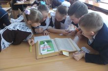 В рамках празднования Дня Родного языка прошло мероприятие для 3-4 классов "Аукцион словарей". Каждая команда представила визитную карточку одного из словарей. Ребята учились пользоваться разными видами словарей выполняя разнообразные задания. Представлена книжная выставка "Словарь, русской речи государь"