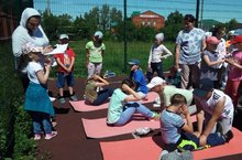 Воспитанники пришкольного лагеря стали участниками районного мероприятия по сдаче нормативов ГТО: бег на 60 м, сгибание и разгибание туловища, наклон вперед из положения стоя, метание мяча, прыжок в длину с места.