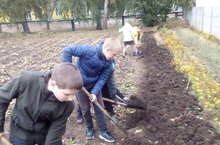 Учащиеся приняли участие в благоустройстве территории школы.