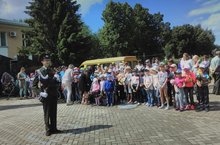 Для воспитанников пришкольного лагеря ""Светофорик выступили сотрудники МЧС.