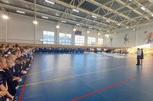 Еженедельное традиционное поднятие флагов прошло сегодня в спортивном зале школы, где поприветствовали победителя республиканского конкурса - активиста Майорову Д.