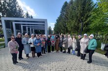 Коллектив школы принял участие в праздничном митинге 9 мая, возложив цветы у памятника в парке Победы.