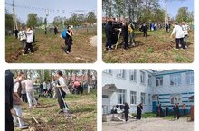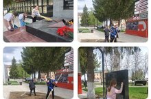Ученики и сотрудники школы приняли участие в общероссийском субботнике. Ребята и педагоги убрались на территории школы, у памятника в парке Победы, на Соборной площади.