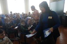 Начальник Чистопольского отделения ГБУ «Безопасность дорожного движения» провела с первоклассниками беседу о правилах дорожного движения, особо обратив на то, почему важно одевать удобную обувь, идти неспеша и не прятать руки в карманы. В конце беседв показала фильм и подарила реюятам памятки.